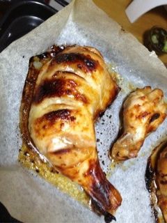 コンベクションオーブンで骨付き鶏の照り焼き。
