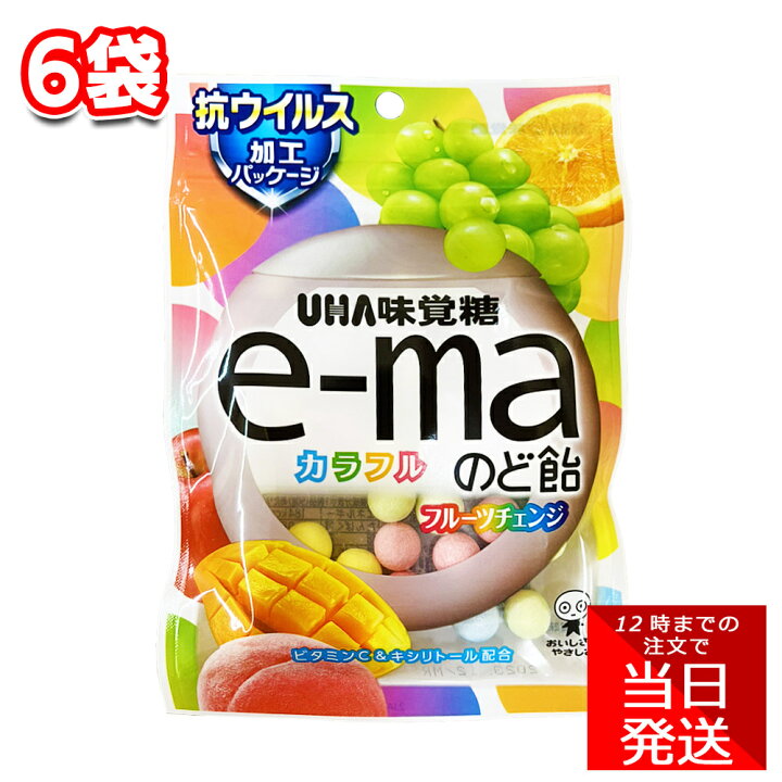 楽天市場 UHA味覚糖 e-maのど飴 カラフルフルーツチェンジ 袋タイプ 50g 6袋 セット まとめ買い あめ アメ フルーツキャンディ かわいい気分転換 休憩 小腹 一息 職場 勉強 家事 おやつ : Tamonストア食品館。