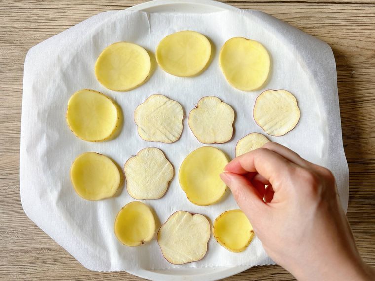 レンジで「揚げないポテトチップス」簡単レシピ。