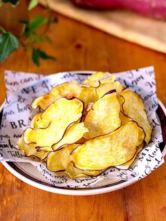 手軽にできる♪ レンジで作るさつまいもチップス。
