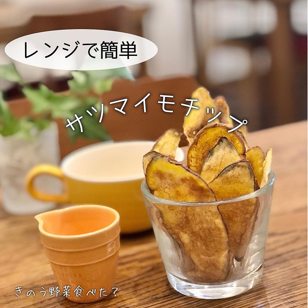 レンジで簡単♡揚げない野菜チップス。