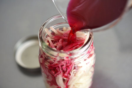 赤梅酢で紅生姜。