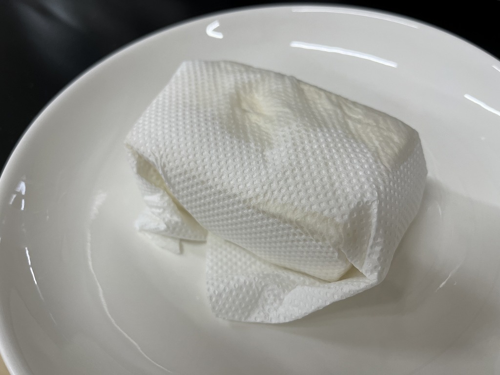 しっかり水分が切れる豆腐の水切り方法。