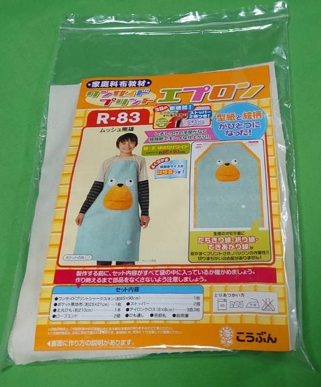 手作りエプロンキット ムッシュ熊雄 家庭科夏休み。