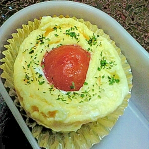 お弁当に最適♪マグカップでレンジのふんわりトマト卵。