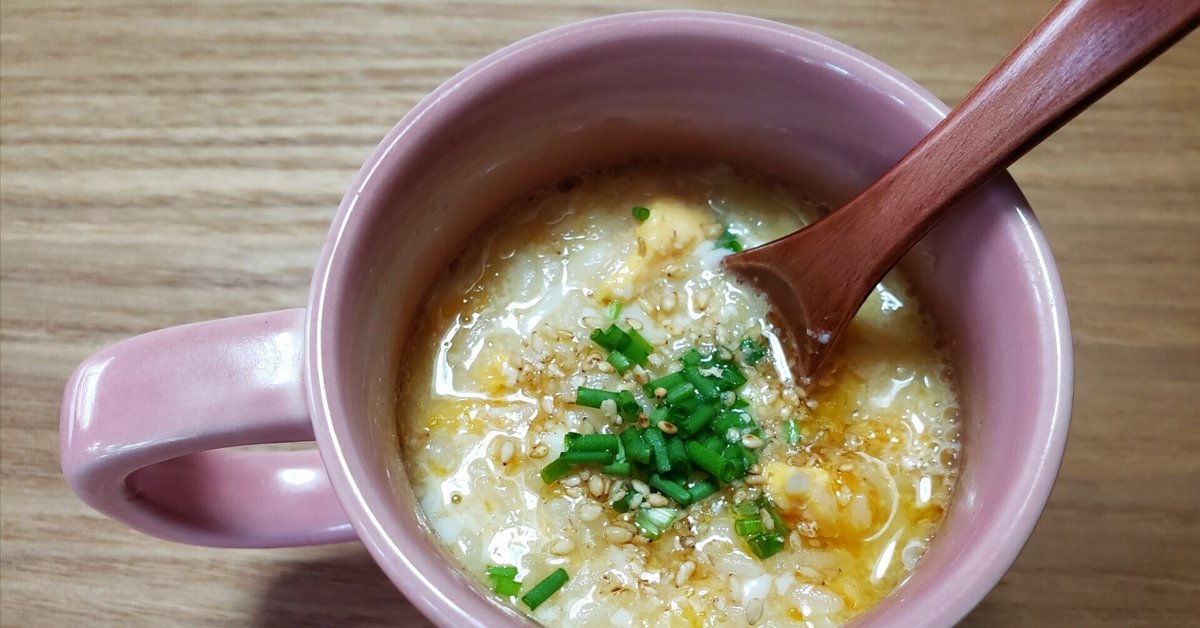 マグカップで!まろやか〜な *´∀`*豆乳の卵雑炊クラシル。