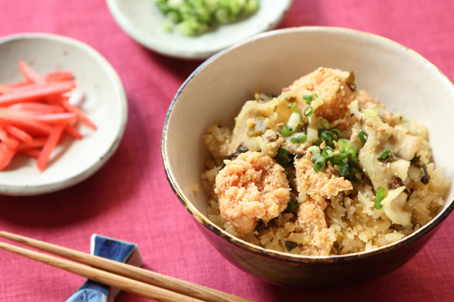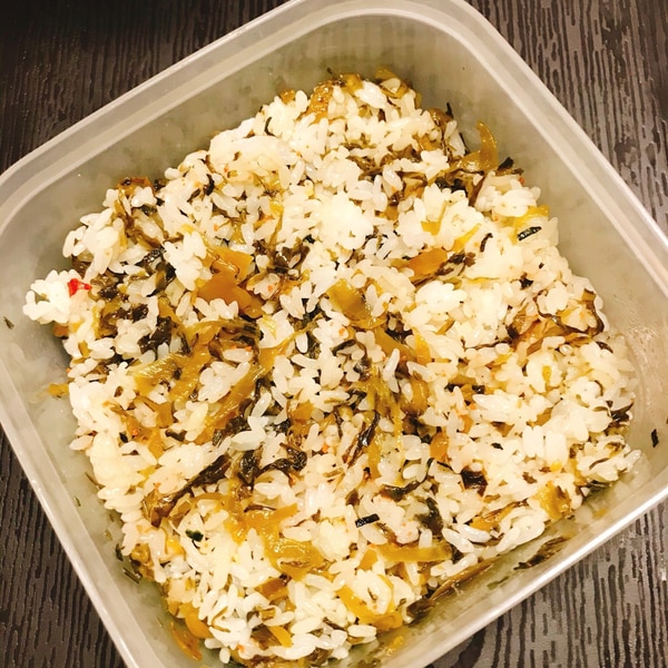 高菜と明太子の紅しょうが入り炊き込みご飯。