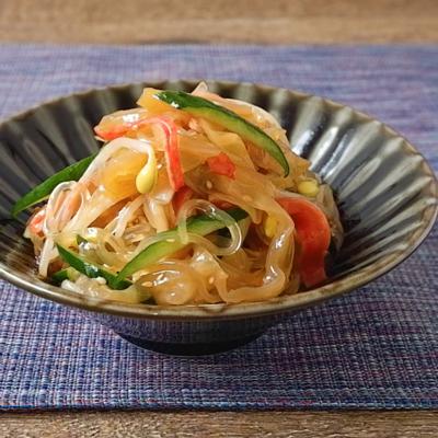 彩りきれいな♪ 中華クラゲときゅうりの春雨サラダ。
