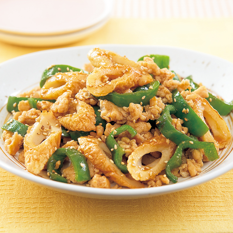 ちくわとピーマン、鶏ひき肉のきんぴら炒め。