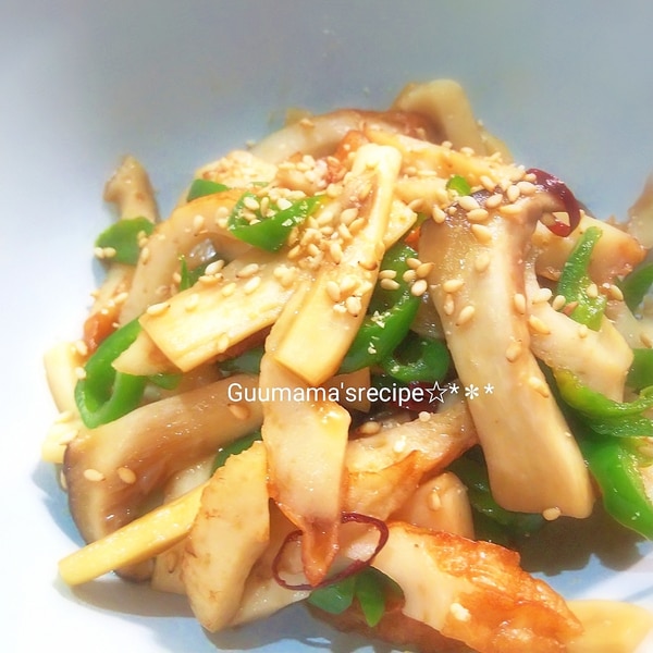 余り物で♡ちくわとエリンギとピーマンのきんぴら。