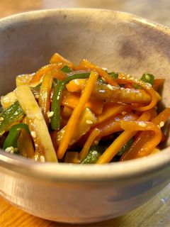 人参とピーマンとちくわのきんぴら 彩り◎シンプルが美味しい。