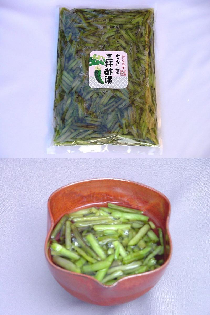 楽天市場 わさびの茎三杯酢漬 500g : わさびのわたなべ。