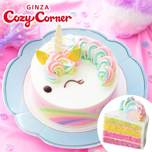 誕生日ケーキ 宅配 バースデーケーキ 4号〜 子供 こども ホールケーキ キャラクター 送料込 ゆめかわレインボーユニコーン 4.5号銀座コージーコーナ。