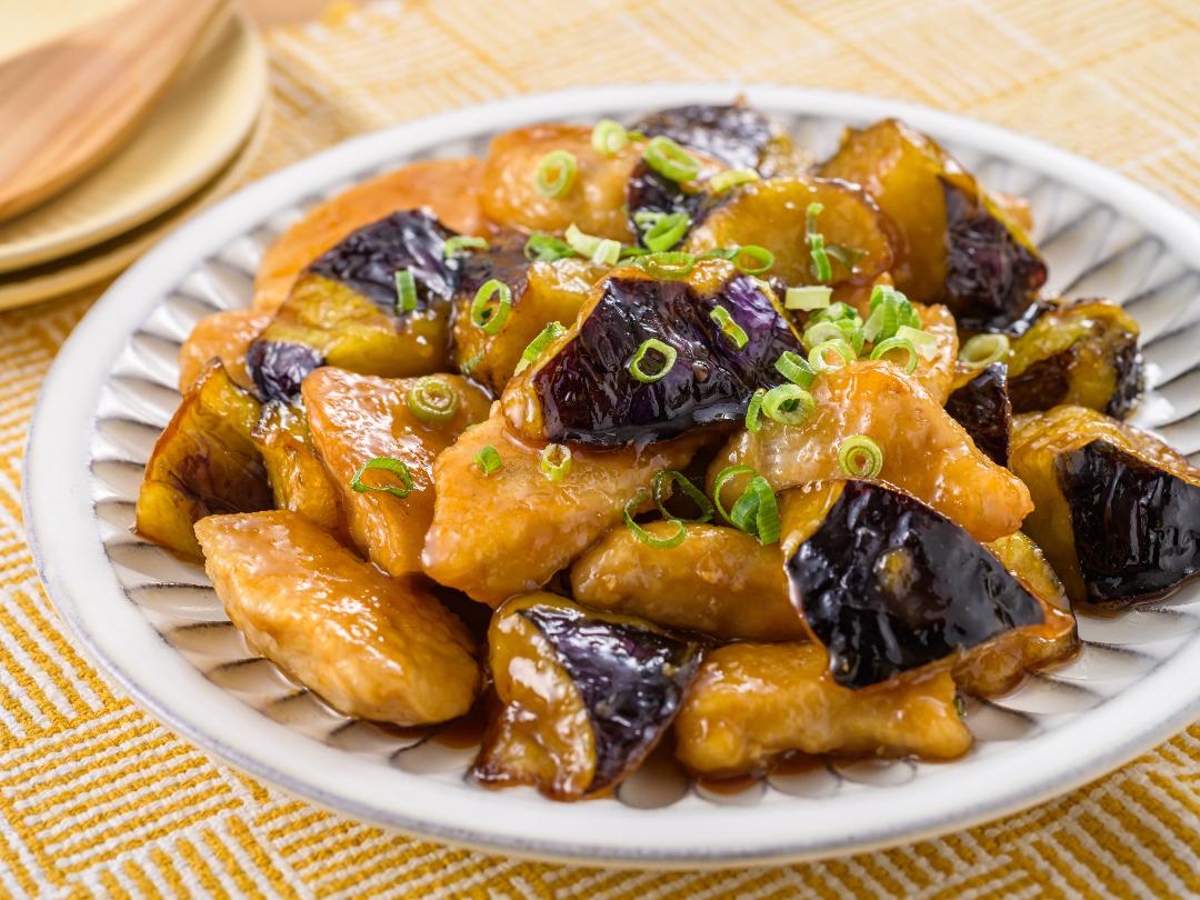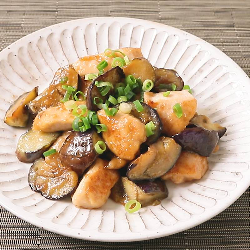 黄金比の簡単味付け!ご飯が進む鶏胸肉となすの生姜焼きのレシピ。