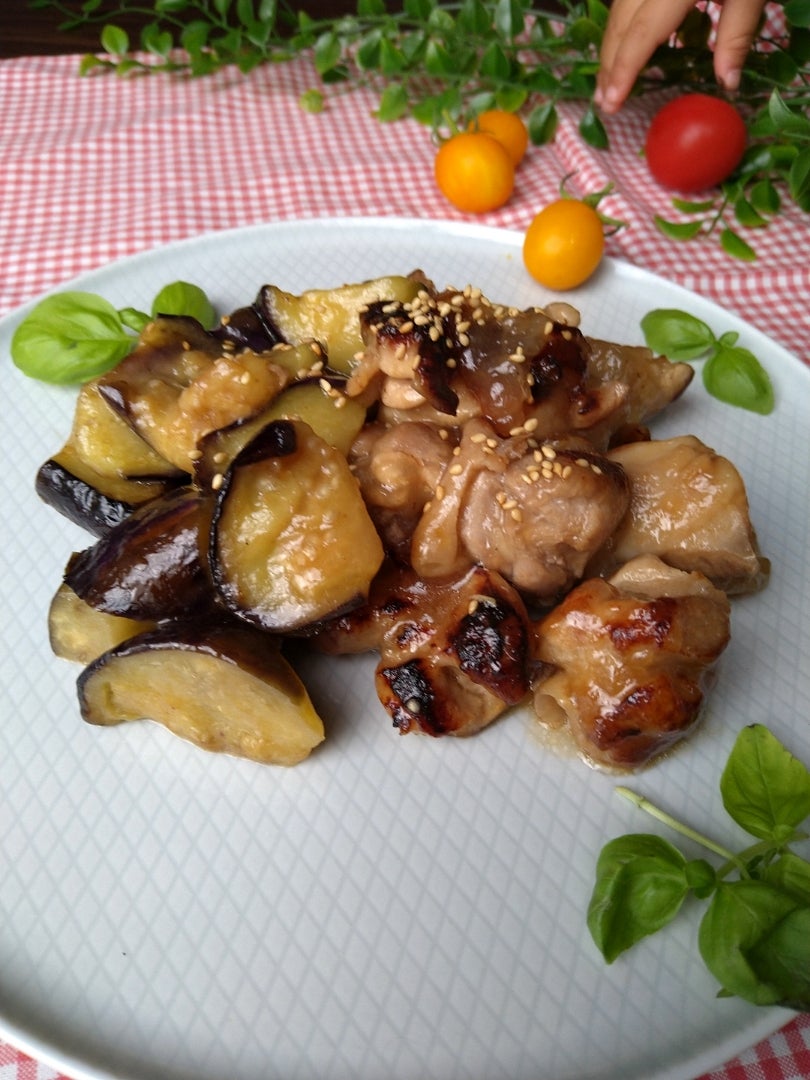 黒酢でさっぱり☆鶏肉と茄子照り焼き。