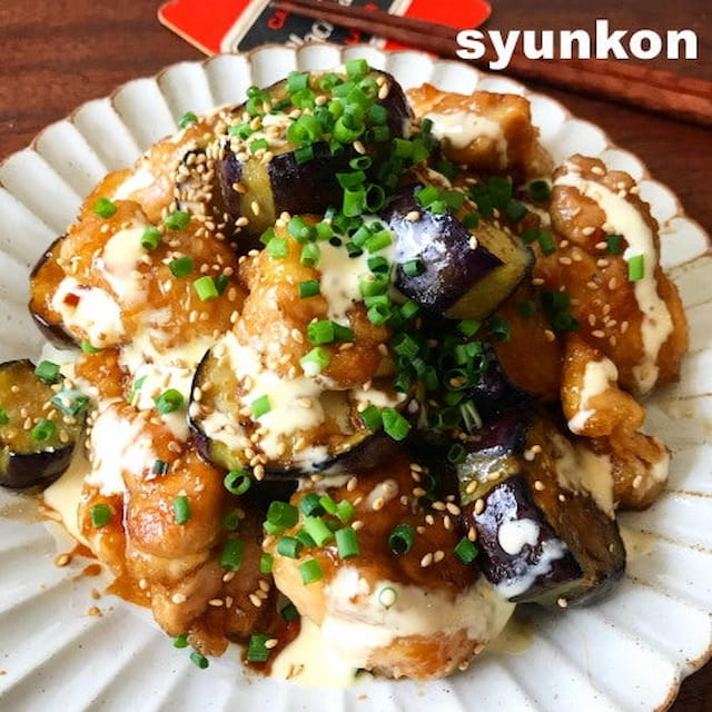 「鶏となすの甘酢だれマヨソースがけ」レシピ。
