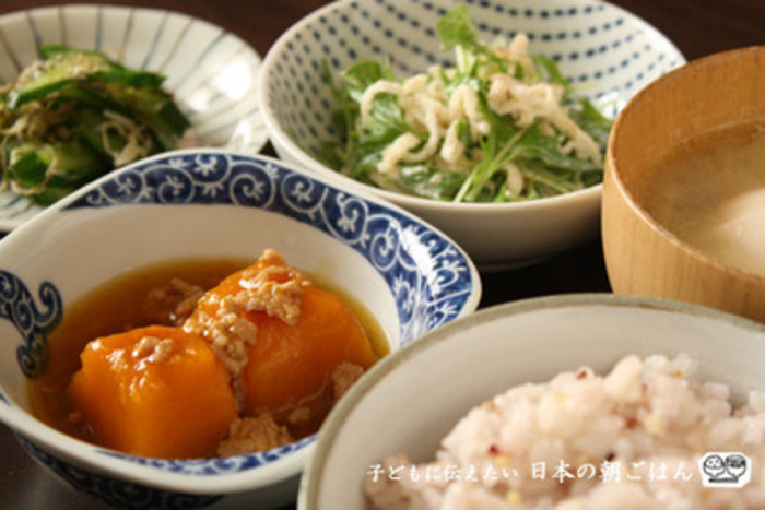 子供と一緒に作る朝ごはん。 和食、朝食、献立。