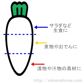 大根の部位の特徴は?味や食感は?煮物や大根おろしには上下どっち買う? - Fily。