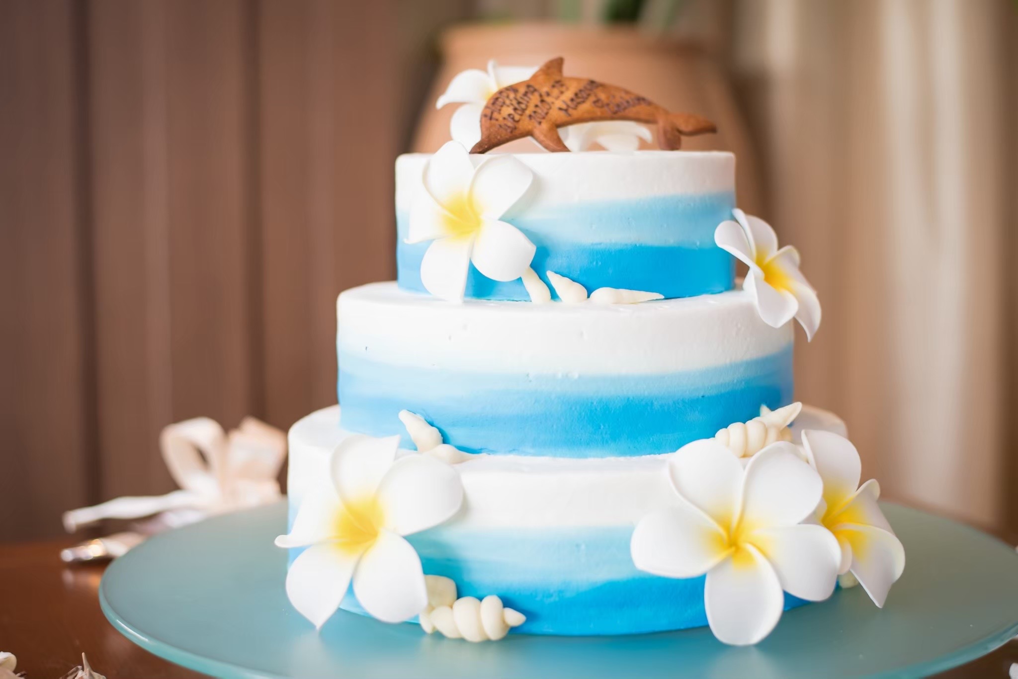 ビーチと青い海をテーマにした可愛くて個性的なウエディングケーキ特集 - 沖縄の女性ウェディング司会者。