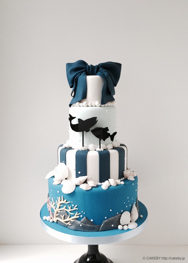 Navy Blue Colored Ribbon Sea Cake 海がテーマのウェディングケーキ – CAKEBY ケイクバイ。
