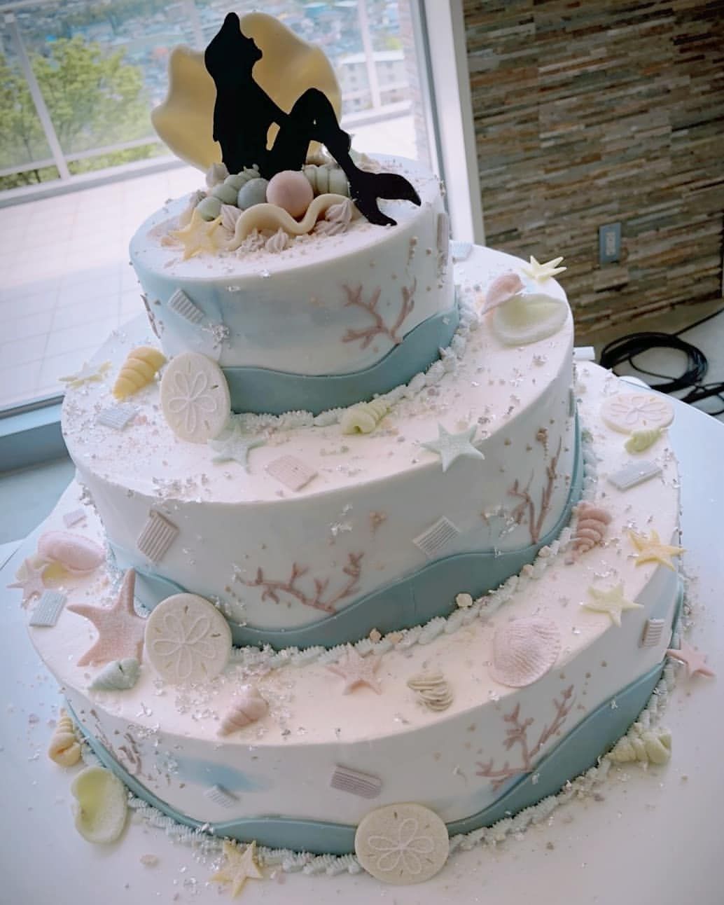 新作ウェディングケーキ 海をイメージして可愛いものが大好き♡な花嫁さん向けた特別な日のギフト♡。