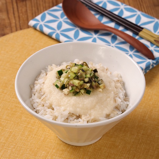 夏野菜たっぷり!山形のだし風麦とろレシピはくばく。