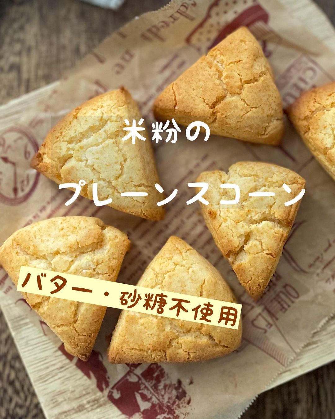 サクッホロッ♪米粉のシンプルスコーン 卵・砂糖なし。