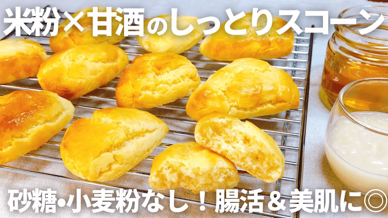 材料5つでサクふわ♪米粉の甘酒スコーン 卵・砂糖なし。
