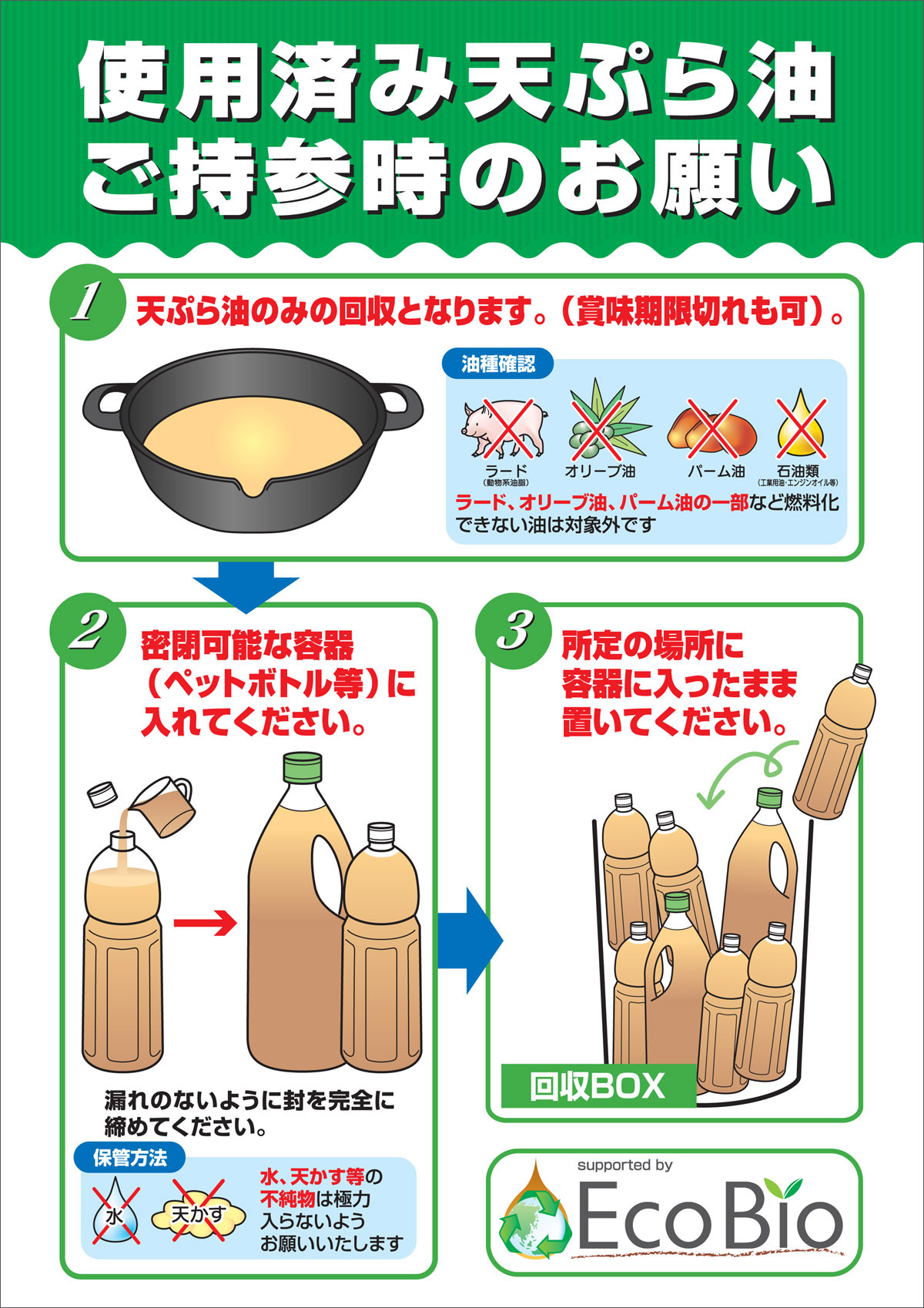使用済み天ぷら油回収 一般家庭エコバイオ株式会社。
