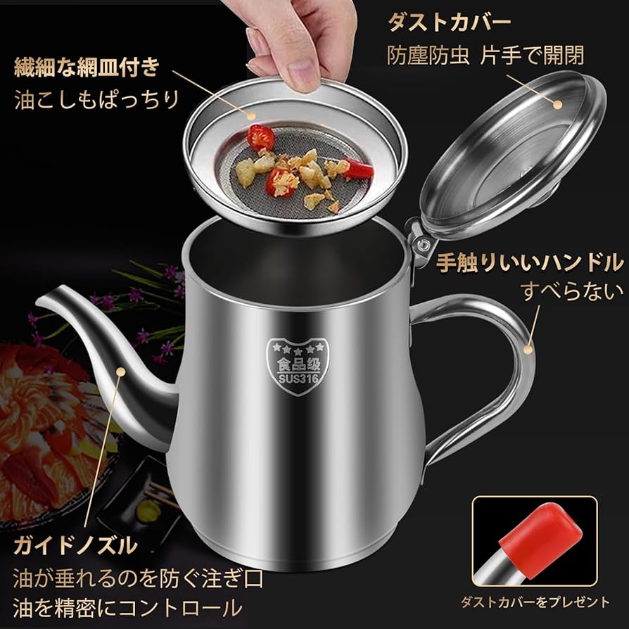 6%OFFクーポン オイルポット 油こし器 1.5L 2L オイルコンテナ 節約 ステンレスフィルター 大容量 揚げ油調理 天ぷら油 天ぷら繰り返し使用可能 環境に優しい スタイリッシュ シンプル キッチン 保存容器 調味料 台所 金属 おしゃれ AmazonRockykeyオイルポット約。