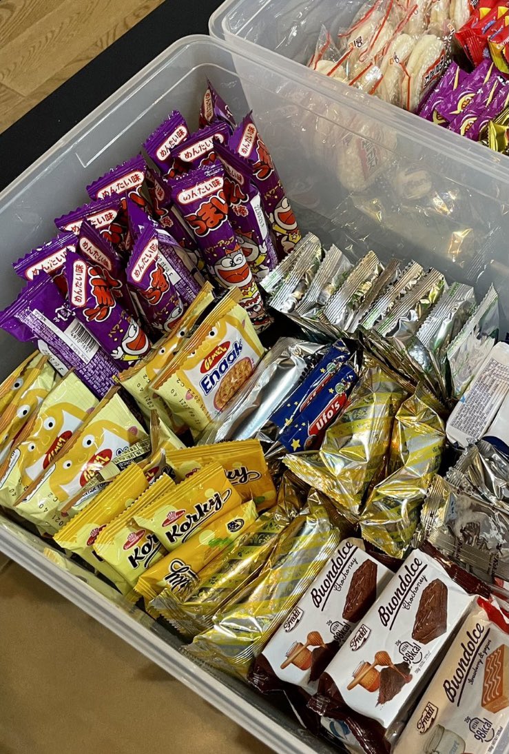 Stray Kids情報☆SKZ-INF8 on X: "スキズが箱ごと持っていったお菓子がこちらです!ハングル表記のお菓子の中でひときわ目を引くのはやはり"うまい棒"❗️めんたい味とチョコ味があります😋日本の駄菓子をキッズ達が食べてくれてると思うと嬉しいですね💕スキズ。