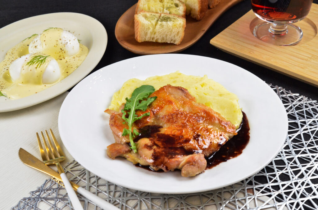 パリパリチキンステーキ 赤ワインソース仕立て - 長州どりブランド こっこ株式会社。