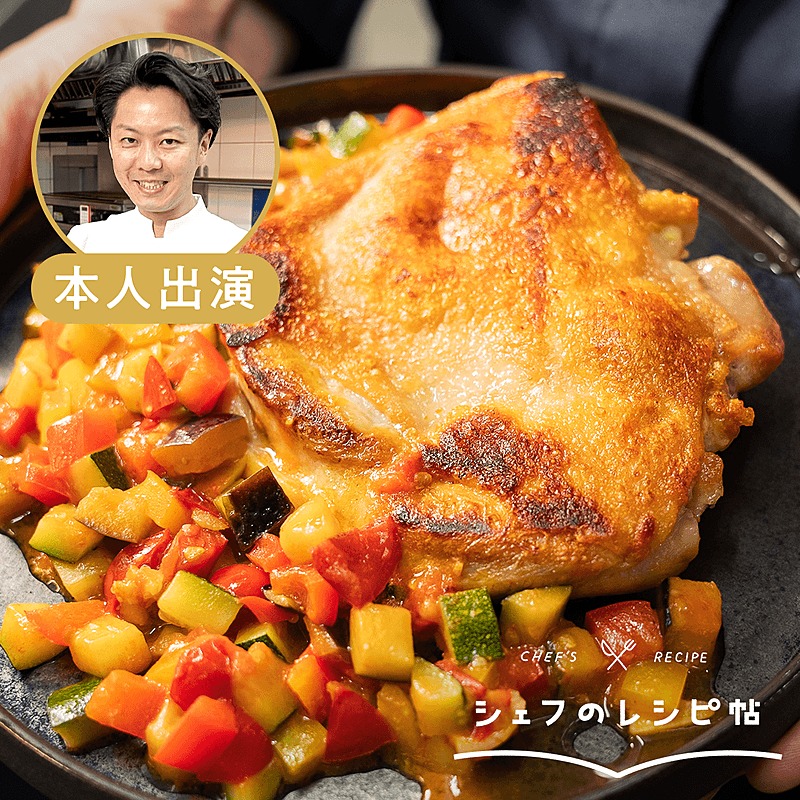 後藤シェフ 鶏のパリパリソテーニンニク夏野菜ソース。