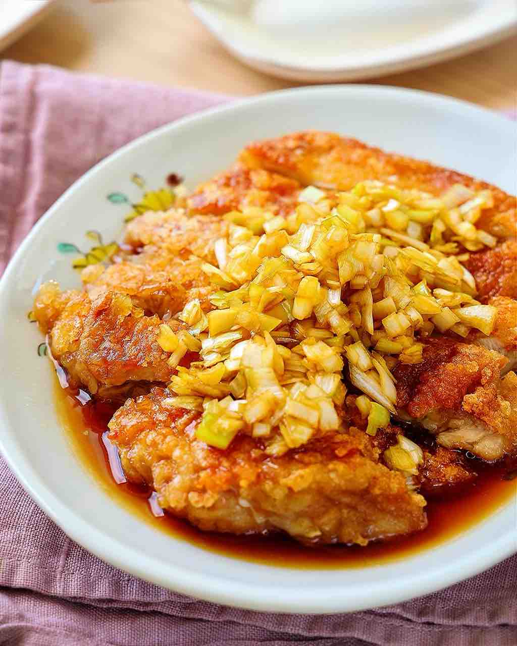 ねぎだれが絶品!パリパリチキンの油淋鶏。