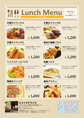 ランチメニューの店内ポスター作りました。 - チラシ制作なら赤木デザイン。