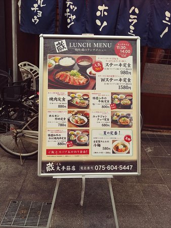 店前のランチメニューのパネル。 - Picture of Kyohorumonkuraotesujiten, Kyoto - Tripadvisor。