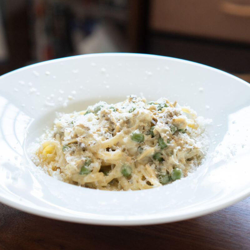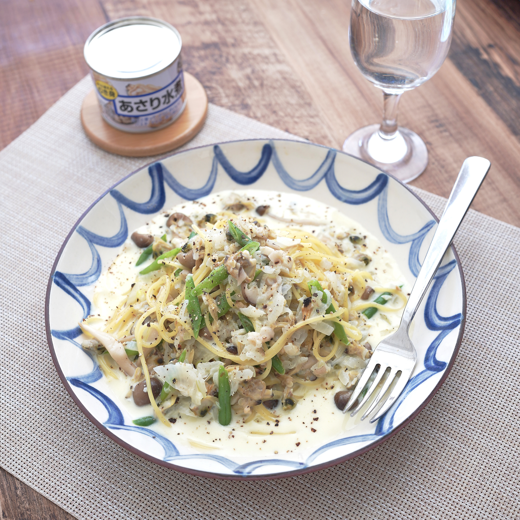 旨みたっぷりで春らしい、あさり缶とグリーンピースのクリームパスタ – CAN PASTA。