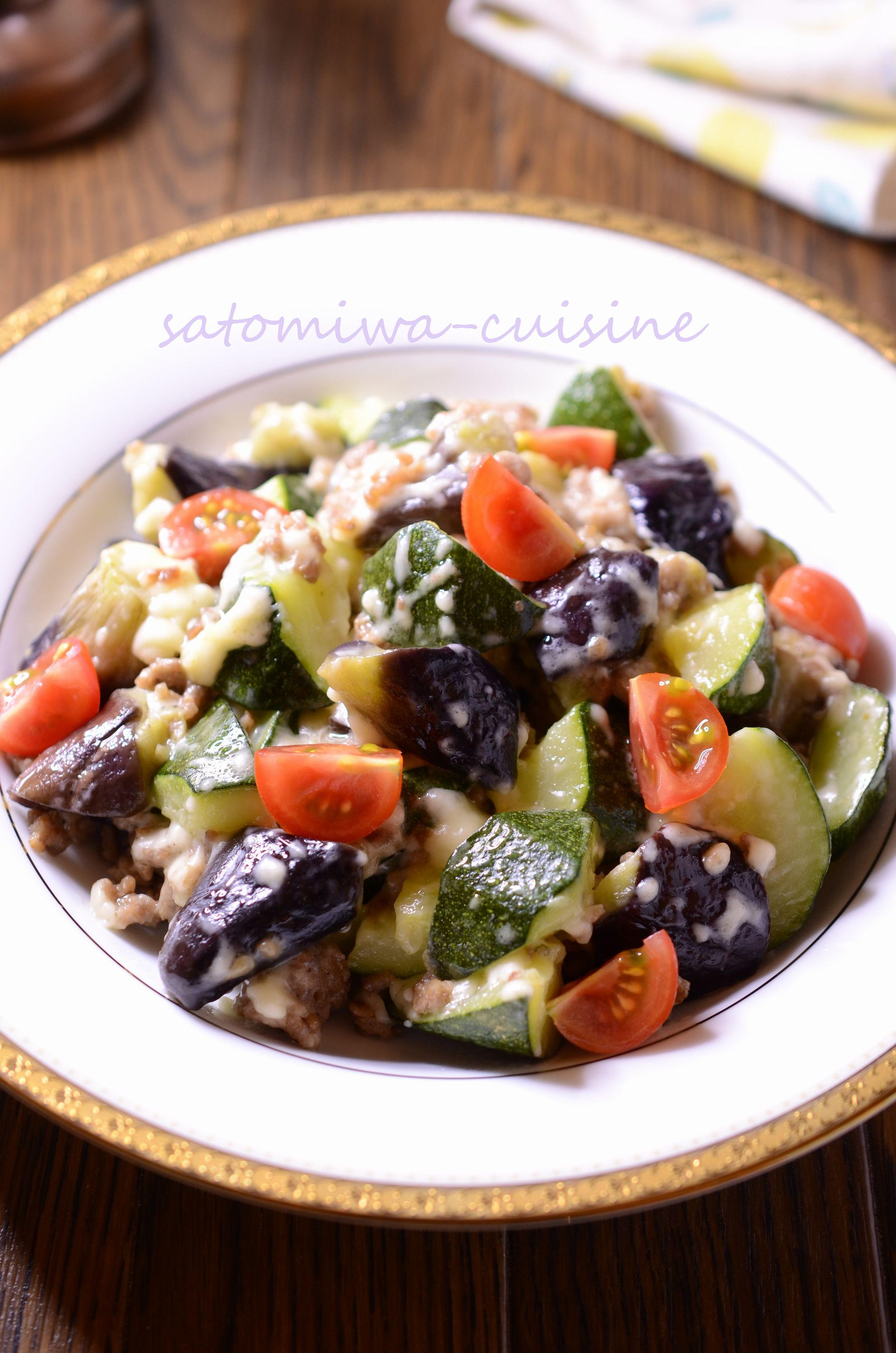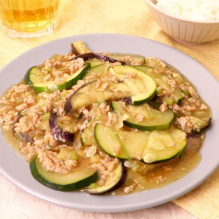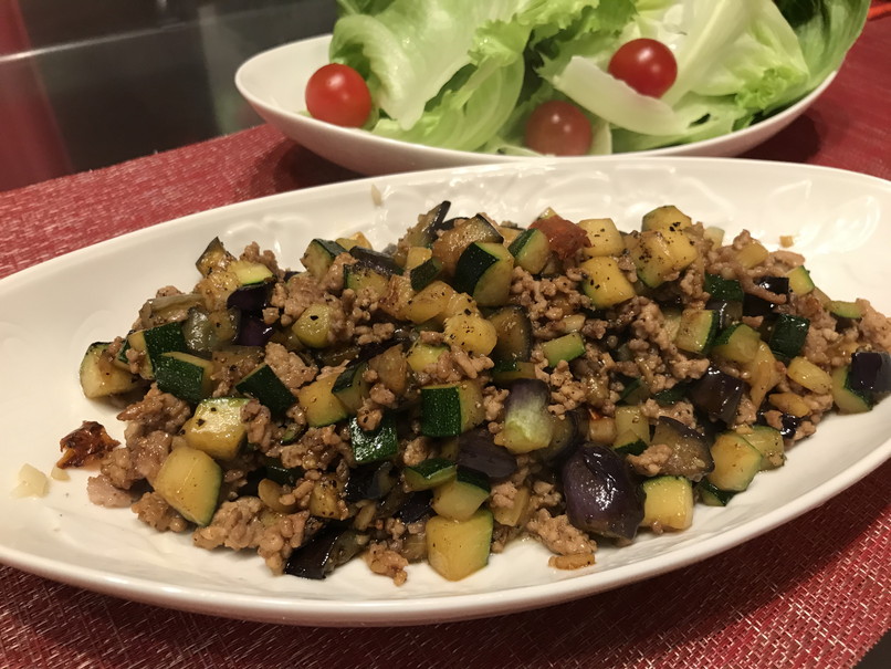 茄子とズッキーニのひき肉炒め シンプル調味料でめちゃ旨!SATOMIWAの☆からだが喜ぶおうちごはん。
