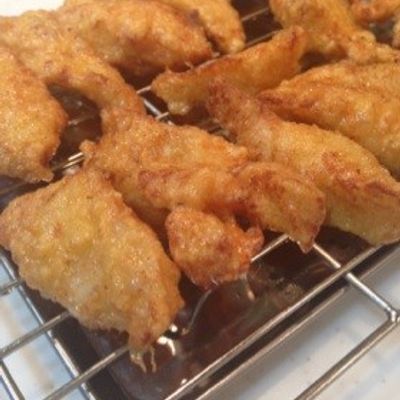 冷凍したまま揚げるあぶらカレイの唐揚げ。