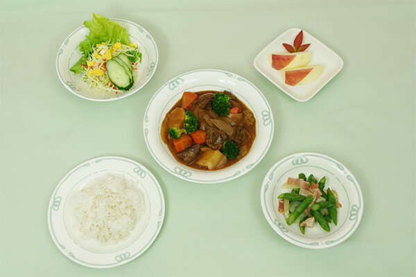 ビーフシチュー ほうれん草オムレツ サラダ添え 食材宅配のヨシケイ 夕食ネット レシピ・メニュー・献立付き。
