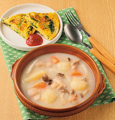 チキンときのこのクリームシチュー 野菜オムレツ 食材宅配のヨシケイ 夕食ネット レシピ・メニュー・献立付き。