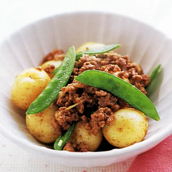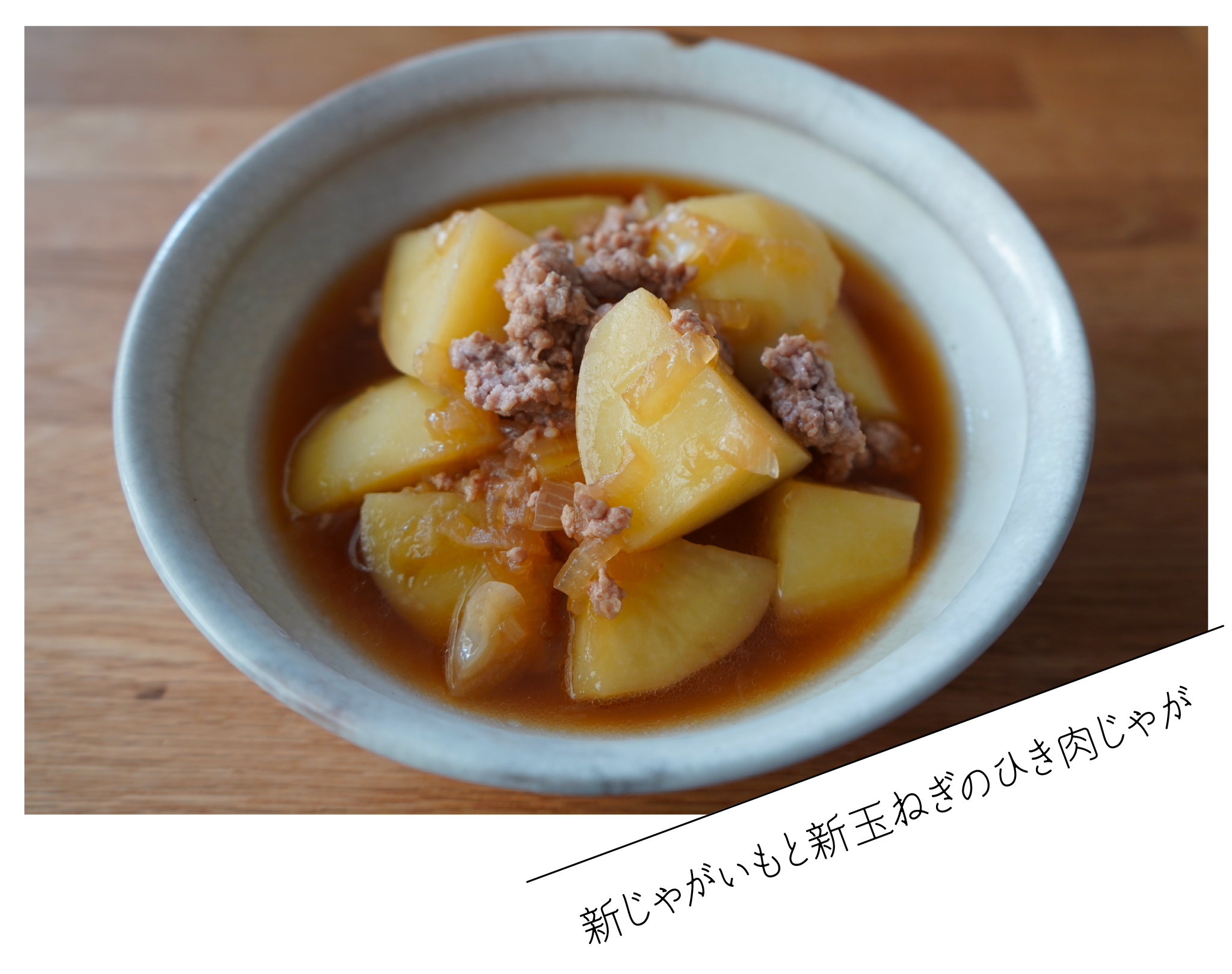 新じゃがいもと豚ひき肉のそぼろ煮。