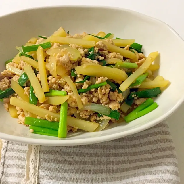 新じゃがいものひき肉きんぴらレシピ!白いご飯にあう料理の作り方。