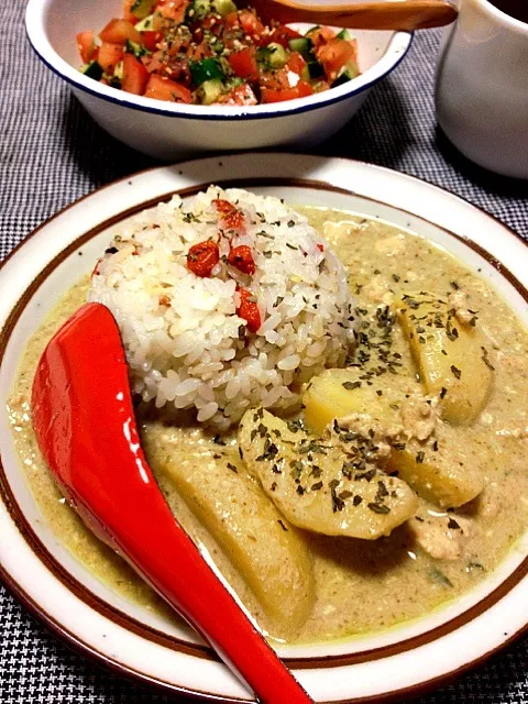 新じゃがいもと新玉ねぎのひき肉じゃが カリカリにんにくとパセリのポテトサラダアイスム。