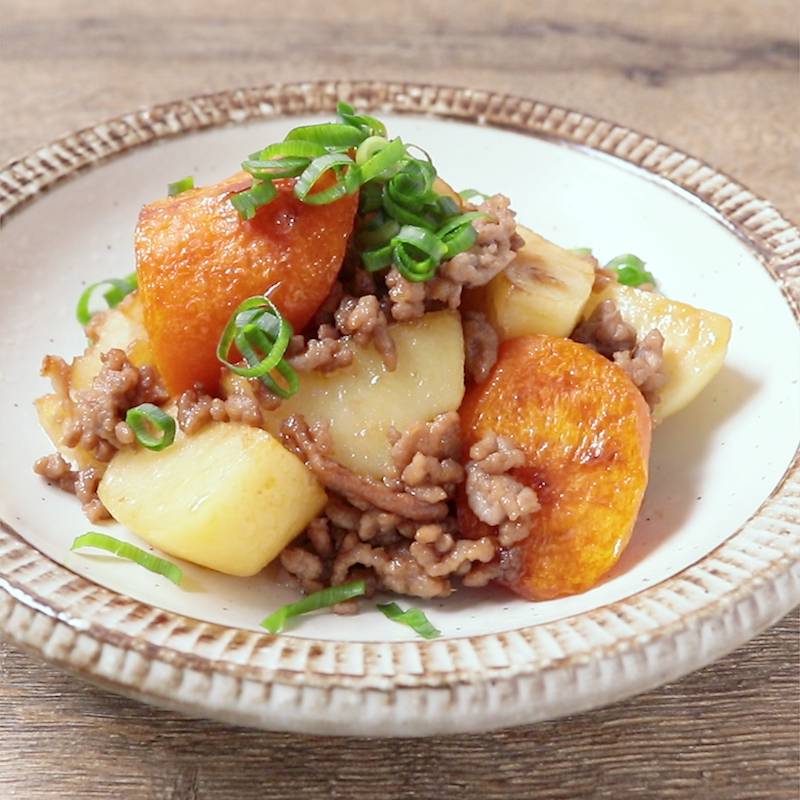 ジャガイモの甘辛そぼろ煮レシピと作り方。