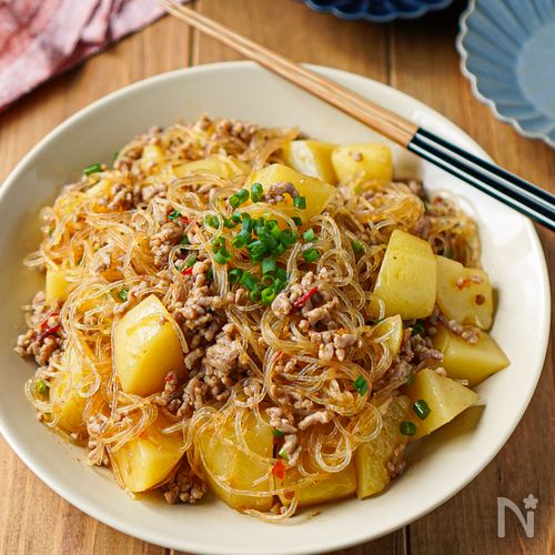 ひき肉とじゃがいもの麻婆チャプチェ やみつき 子供が喜ぶ。