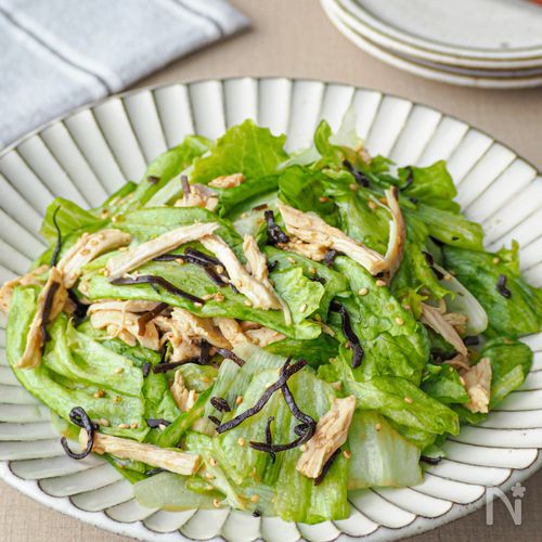 レタスと鶏むね肉の塩昆布サラダ むくみ解消、腸活に簡単レシピshorts - YouTube。