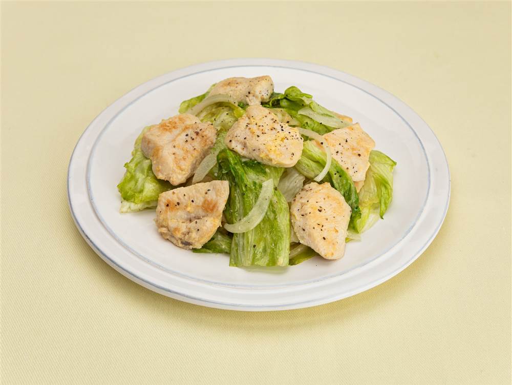 レタスと鶏むね肉の塩昆布マヨソテ。