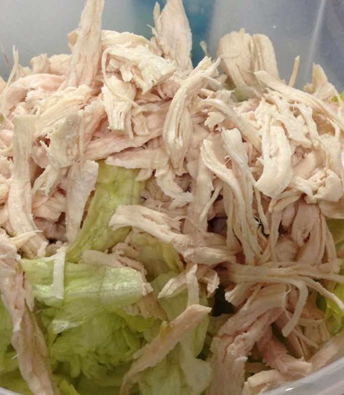 がっつり! 鶏むね肉とレタスのマヨネーズサラダ。