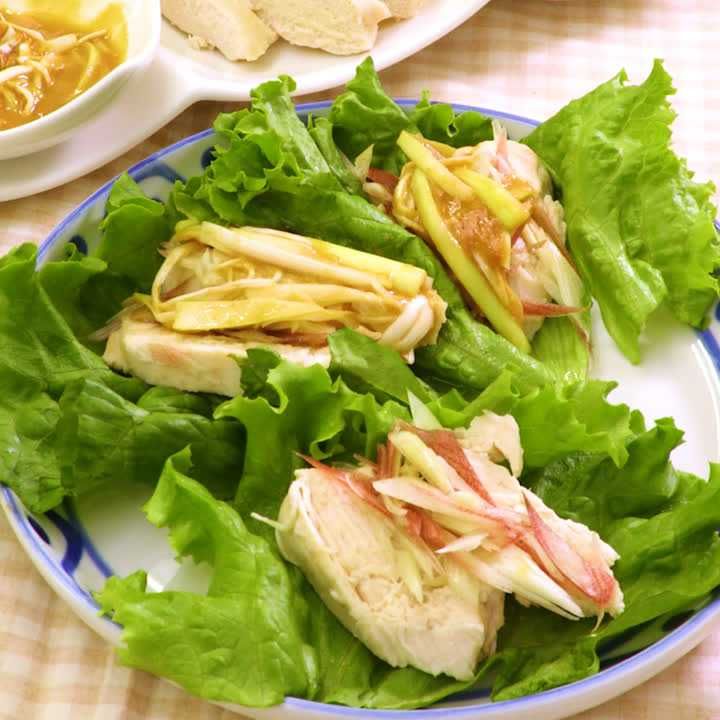 蒸し鶏の韓国風レタス包み - 顔が見える食品。
